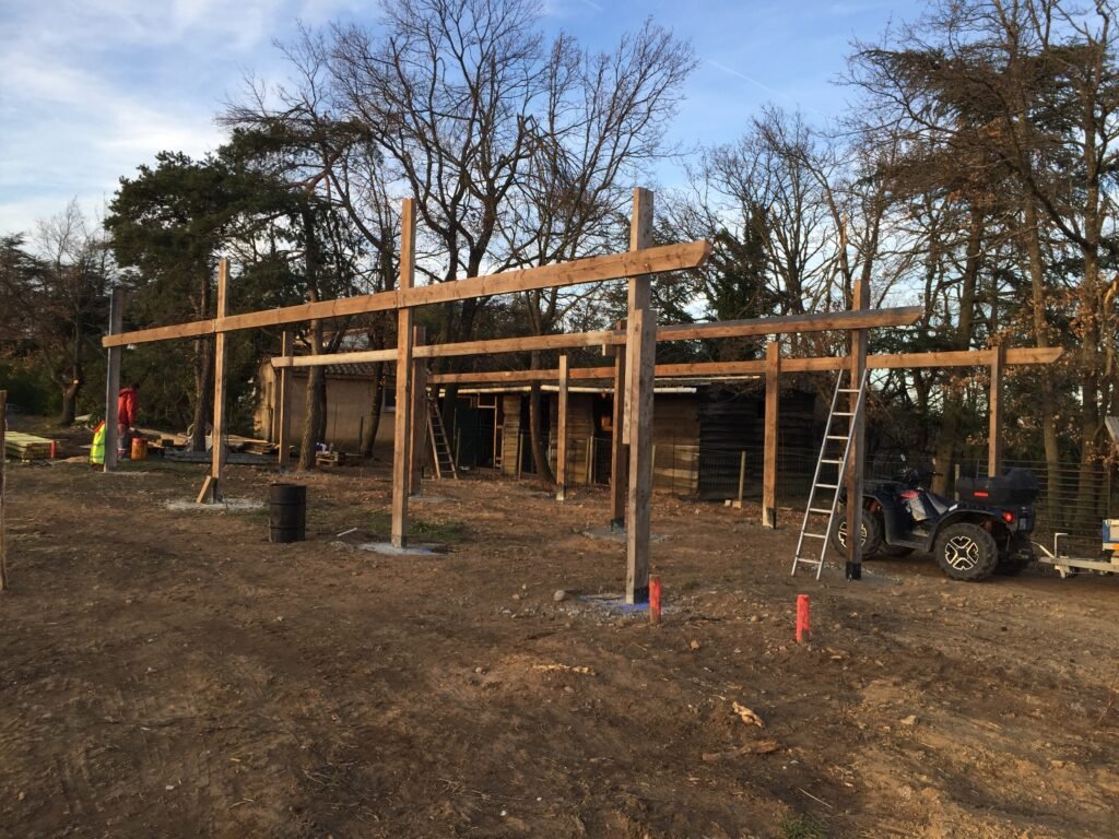 Bien que nous ayons eu raison d’eux, notre volonté de casser les 7 murs à la main a flanché. Nous avons donc opté pour une mini-pelle accompagnée de son BRH (brise-roche). Ce ne fut pas non plus une promenade de santé, mais le chantier s’est terminé en une journée. Depuis les chevaux sur les écuries peuvent aussi bénéficier d’une vie en liberté et en troupeau 24h/24, pour notre plus grand plaisir et pour le leur également !